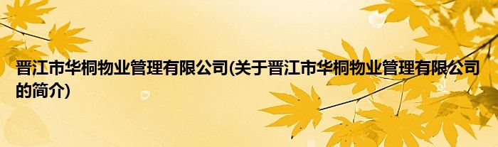 晋江市华桐物业管理有限公司(关于晋江市华桐物业管理有限公司的简介)