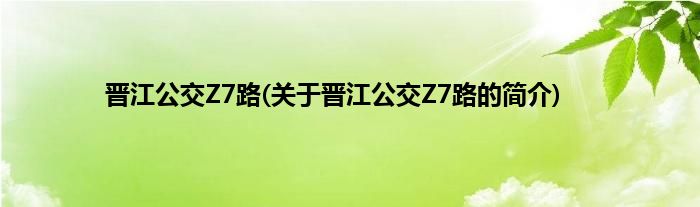 本文关于晋江公交Z7路的简介就讲解完毕,希望对大家有所帮助。