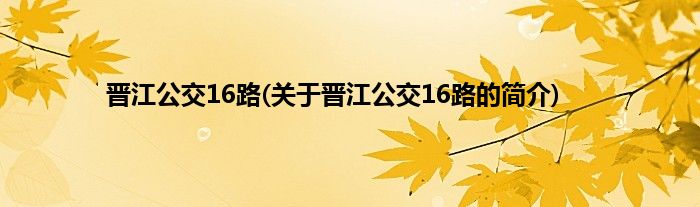 本文关于晋江公交16路的简介就讲解完毕,希望对大家有所帮助。