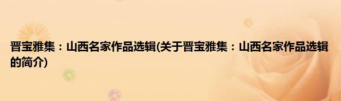 本文关于晋宝雅集:山西名家作品选辑的简介就讲解完毕,希望对大家有所帮助。