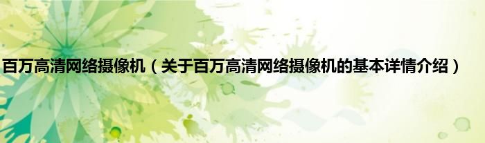 本文关于百万高清网络摄像机的基本详情介绍就讲解完毕,希望对大家有所帮助。