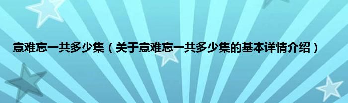 本文关于意难忘一共多少集的基本详情介绍就讲解完毕,希望对大家有所帮助。