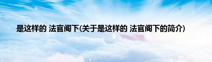 大家好,是这样的,法官阁下,关于是这样的,法官阁下的简介很多人还不知道,现在让我们一起来看看吧!