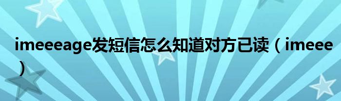 大家好,小问来为大家解答以上问题。imeeeage发短信怎么知道对方已读,imeee这个很多人还不知道,现在让我们一起来看看吧!
