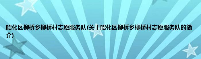 本文关于昭化区柳桥乡柳桥村志愿服务队的简介就讲解完毕,希望对大家有所帮助。