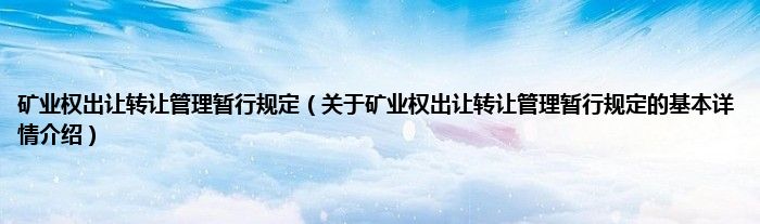 本文关于矿业权出让转让管理暂行规定的基本详情介绍就讲解完毕,希望对大家有所帮助。