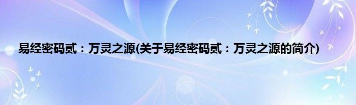 大家好,易经密码贰:万灵之源,关于易经密码贰:万灵之源的简介很多人还不知道,现在让我们一起来看看吧!