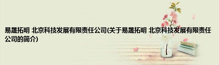 本文关于易晟拓明 北京科技发展有限责任公司的简介就讲解完毕,希望对大家有所帮助。