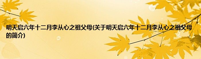 本文关于明天启六年十二月李从心之祖父母的简介就讲解完毕,希望对大家有所帮助。