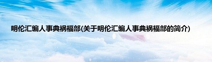 本文关于明伦汇编人事典祸福部的简介就讲解完毕,希望对大家有所帮助。