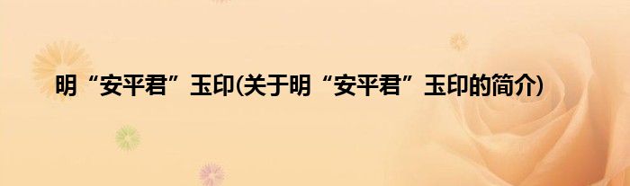本文关于明“安平君”玉印的简介就讲解完毕,希望对大家有所帮助。