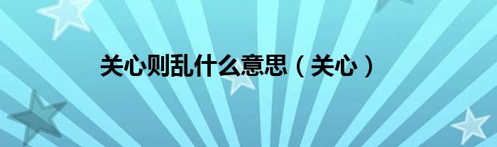 大家好,小问来为大家解答以上问题。关心则乱什么意思,关心这个很多人还不知道,现在让我们一起来看看吧!