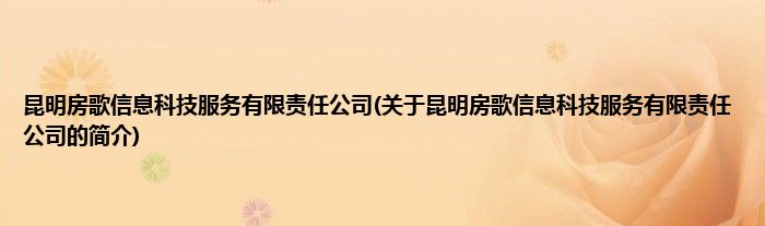 昆明房歌信息科技服务有限责任公司(关于昆明房歌信息科技服务有限责任公司的简介)