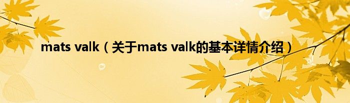 本文关于mats valk的基本详情介绍就讲解完毕,希望对大家有所帮助。
