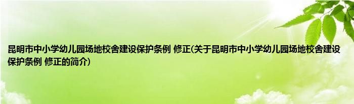 本文关于昆明市中小学幼儿园场地校舍建设保护条例 修正的简介就讲解完毕,希望对大家有所帮助。
