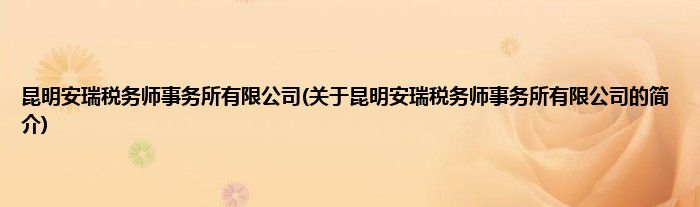 本文关于昆明安瑞税务师事务所有限公司的简介就讲解完毕,希望对大家有所帮助。