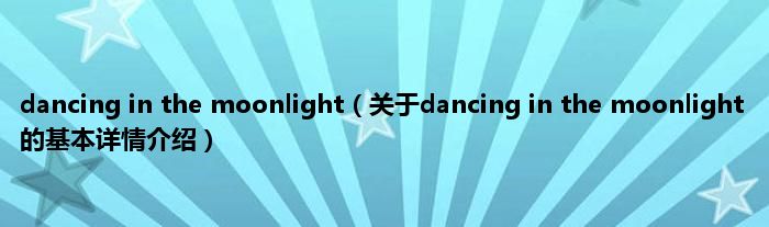 本文关于dancing in the moonlight的基本详情介绍就讲解完毕,希望对大家有所帮助。