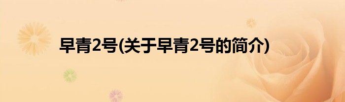 大家好,早青2号,关于早青2号的简介很多人还不知道,现在让我们一起来看看吧!