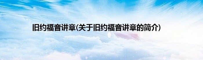 大家好,旧约福音讲章,关于旧约福音讲章的简介很多人还不知道,现在让我们一起来看看吧!