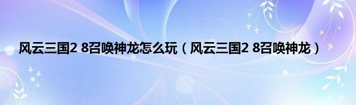 以上就是【风云三国2 8召唤神龙怎么玩,风云三国2 8召唤神龙】相关内容。