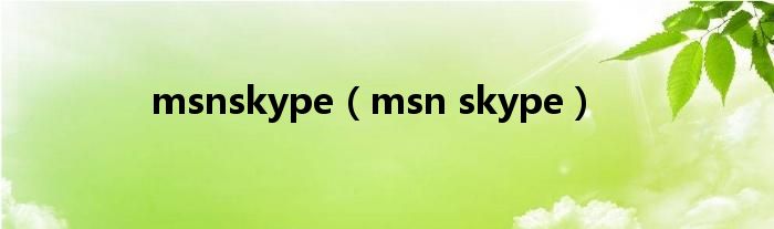 大家好,小问来为大家解答以上问题。msnskype,msn skype这个很多人还不知道,现在让我们一起来看看吧!