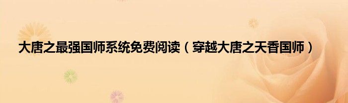 大家好,小问来为大家解答以上问题。大唐之最强国师系统免费阅读,穿越大唐之天香国师这个很多人还不知道,现在让我们一起来看看吧!