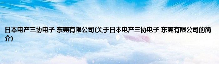 本文关于日本电产三协电子 东莞有限公司的简介就讲解完毕,希望对大家有所帮助。