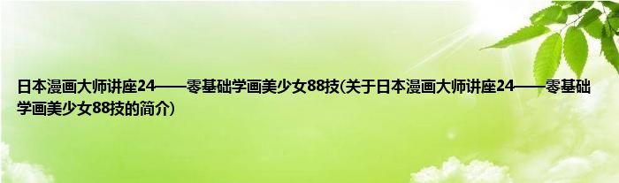 本文关于日本漫画大师讲座24——零基础学画美少女88技的简介就讲解完毕,希望对大家有所帮助。