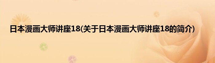 本文关于日本漫画大师讲座18的简介就讲解完毕,希望对大家有所帮助。