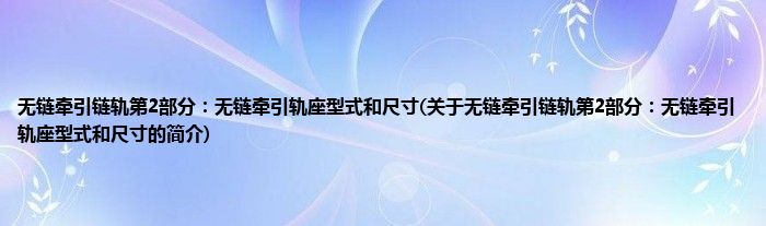 1、 《无链牵引链轨第2部分:无链牵引轨座型式和尺寸》是2002年9月1日实施的一项行业标准。