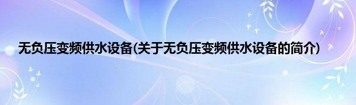 本文关于无负压变频供水设备的简介就讲解完毕,希望对大家有所帮助。