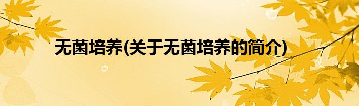 本文关于无菌培养的简介就讲解完毕,希望对大家有所帮助。