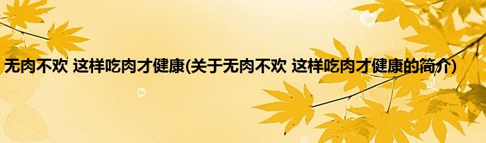 大家好,无肉不欢,这样吃肉才健康,关于无肉不欢,这样吃肉才健康的简介很多人还不知道,现在让我们一起来看看吧!