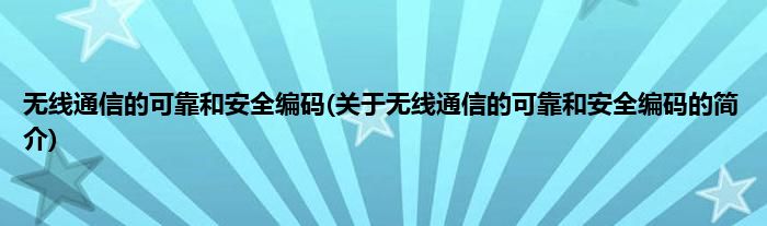 大家好,无线通信的可靠和安全编码,关于无线通信的可靠和安全编码的简介很多人还不知道,现在让我们一起来看看吧!