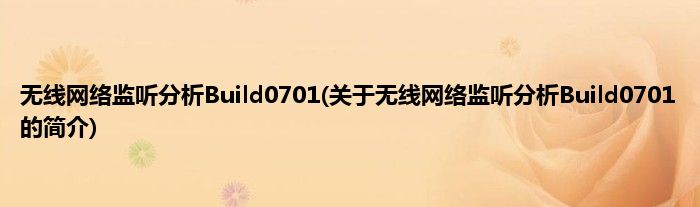 大家好,无线网络监听分析Build0701,关于无线网络监听分析Build0701的简介很多人还不知道,现在让我们一起来看看吧!