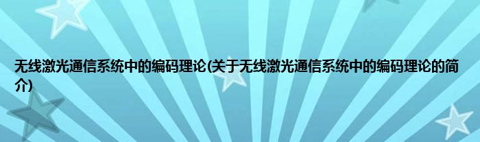 大家好,无线激光通信系统中的编码理论,关于无线激光通信系统中的编码理论的简介很多人还不知道,现在让我们一起来看看吧!