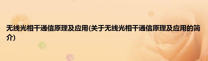 本文关于无线光相干通信原理及应用的简介就讲解完毕,希望对大家有所帮助。