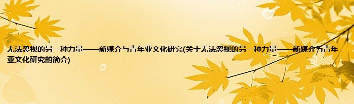 大家好,无法忽视的另一种力量——新媒介与青年亚文化研究,关于无法忽视的另一种力量——新媒介与青年亚文化研究的简介很多人还不知道,现在让我们一起来看看吧!