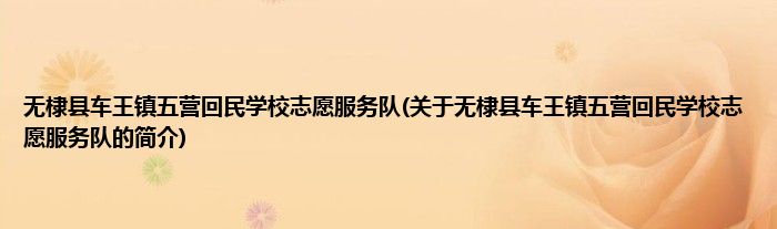 1、 无棣县车王镇五营回民学校志愿服务队是由无棣县志愿服务队领导下的志愿团体。