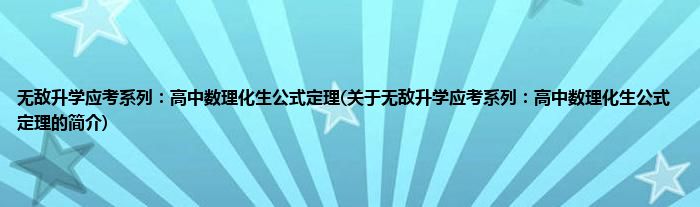 本文关于无敌升学应考系列:高中数理化生公式定理的简介就讲解完毕,希望对大家有所帮助。
