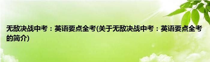 本文关于无敌决战中考:英语要点全考的简介就讲解完毕,希望对大家有所帮助。