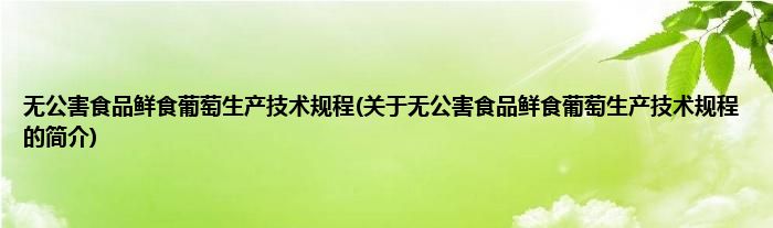 无公害食品鲜食葡萄生产技术规程(关于无公害食品鲜食葡萄生产技术规程的简介)