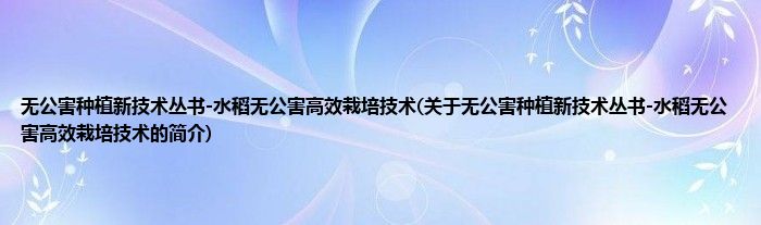 本文关于无公害种植新技术丛书-水稻无公害高效栽培技术的简介就讲解完毕,希望对大家有所帮助。