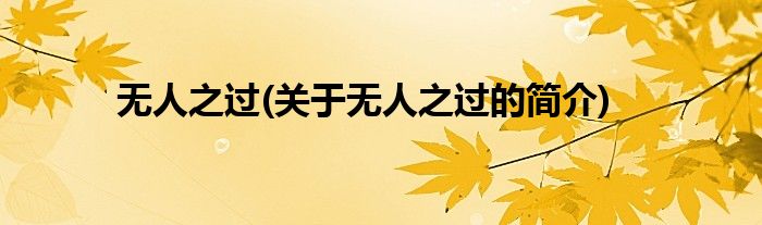 本文关于无人之过的简介就讲解完毕,希望对大家有所帮助。