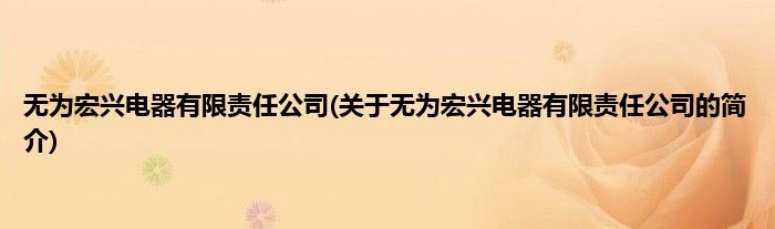 本文关于无为宏兴电器有限责任公司的简介就讲解完毕,希望对大家有所帮助。