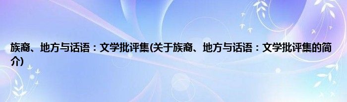 本文关于族裔、地方与话语:文学批评集的简介就讲解完毕,希望对大家有所帮助。