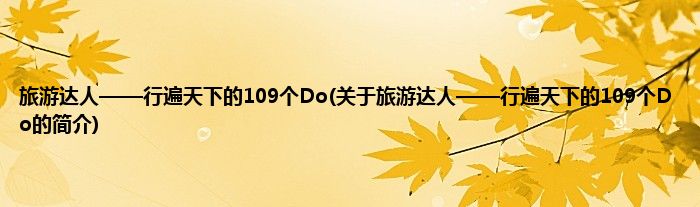 大家好,旅游达人——行遍天下的109个Do,关于旅游达人——行遍天下的109个Do的简介很多人还不知道,现在让我们一起来看看吧!