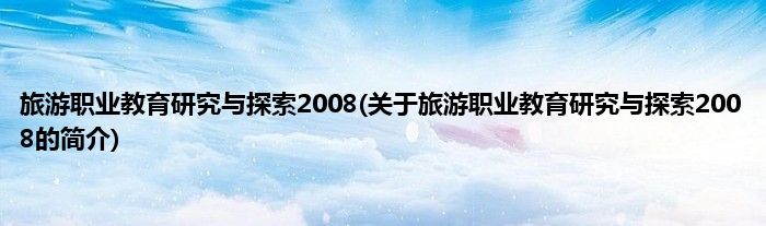本文关于旅游职业教育研究与探索2008的简介就讲解完毕,希望对大家有所帮助。