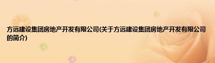 大家好,方远建设集团房地产开发有限公司,关于方远建设集团房地产开发有限公司的简介很多人还不知道,现在让我们一起来看看吧!