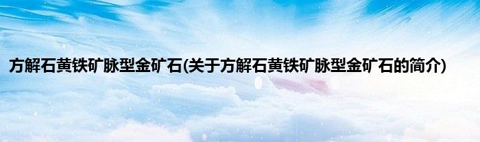 本文关于方解石黄铁矿脉型金矿石的简介就讲解完毕,希望对大家有所帮助。